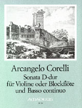 Corelli Sonata in D Major, Op. Posth., for Violin or Recorder (Flute, Oboe) & B.C. Score & Parts.