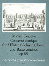 Corette Concerto Comique in B Major, Op. 8, No. 1, for 3 Flutes (Violins/Oboes) & B.C. Score & Parts.