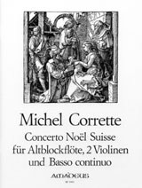 Corette Concerto Noel Suisse for Treble Recorder (Flute, Oboe), 2 Violins, & B.C.