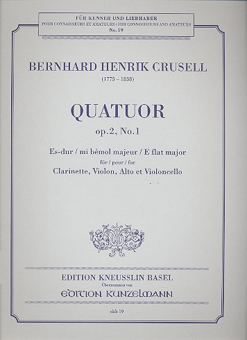 Crusell Clarinet Quartet in E-Flat Major, Op. 2, No. 1, for Clarinet, Violin, Viola, and Cello. Set of Parts.