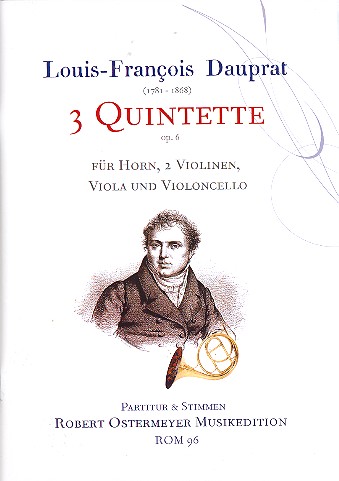 Dauprat (Louis-Francois) Three (3) Quintets, Op. 6, for Horn and String Quartet (2 Violins, Viola, Cello). Score and Parts.