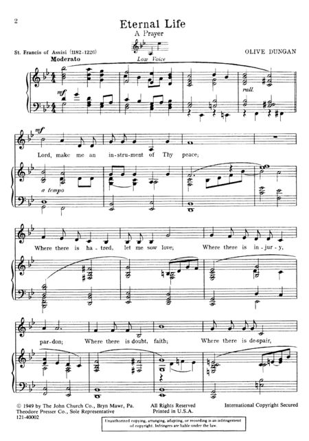Dungan Eternal Life (A Prayer of St. Francis of Assisi), for Low Voice (Key of B-Flat) and Piano (Organ)