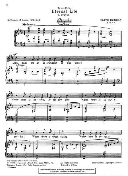 Dungan Eternal Life (A Prayer of St. Francis of Assisi), for High Voice (Key of D) and Piano (Organ)