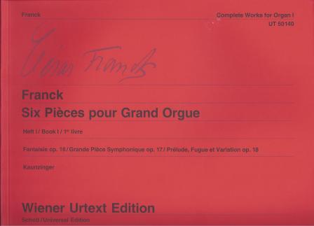 Franck Six (6) Pieces pour Grand Orgue, Book 1: Opp. 16, 17, 18. [Complete Works for Organ, Vol. 1]. Wiener Urtext Edition by Gunther Kaunzinger.