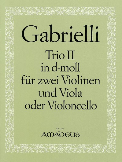 Gabrielli (Ladislav) Trio No. 2 in D Minor for 2 Violins and Viola or Cello. Edited by Bernhard Pauler. Parts.