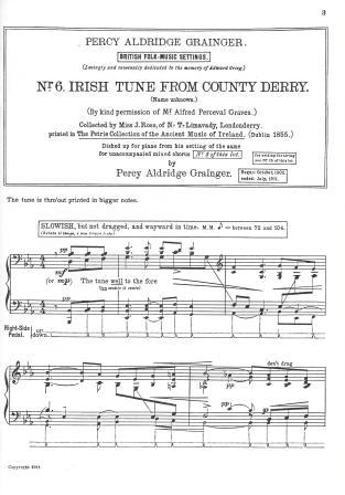 Grainger (Percy) Irish Tune from County Derry [Londonderry Air / O Danny Boy], for Piano Solo