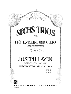 Haydn Six (6) Trios, Op. 100, for Flute, Violin, Cello, Vol. 2 (Nos. 4-6)