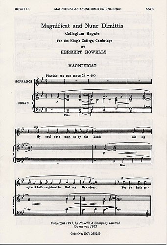 Howells Magnificat and Nunc Dimittis ("Collegium Regale"), for the King's College, Cambridge. For SATB Choir and Organ.