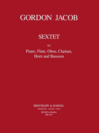 Jacob (Gordon) Sextet for Flute, Oboe, Clarinet, Horn, Bassoon and Piano. Playing Score and Parts.