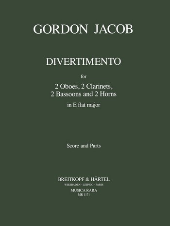 Jacob (Gordon) Divertimento in E-Flat Major for Woodwind Octet (2 Oboes, 2 Clarinets, 2 Bassoons, 2 Horns). Score and Parts.