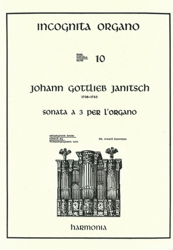 Janitsch Sonata a 3 [Trio sonata] for Organ. First Edition. Edited by Ewald Kooiman. Incognita Organo, Vol. 10.