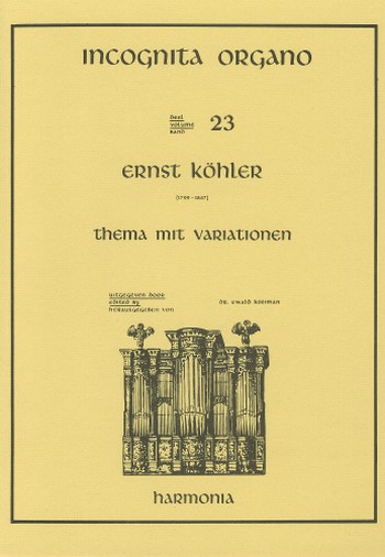 Kohler (Ernst) Theme with Variations, for Organ. Edited by Ewald Kooiman. Incognita Organo, Vol. 23.