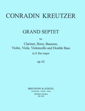 Kreutzer Grand Septet in E-Flat Major, Op. 62, for Clarinet, Horn, Bassoon, Violin, Viola, Cello, and Double Bass. Set of Parts.