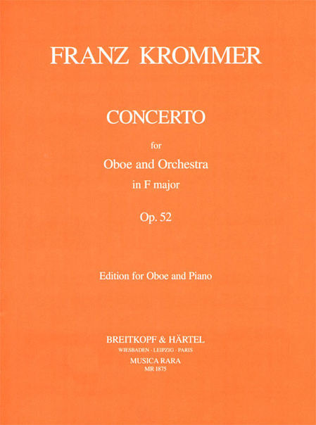 Krommer Concerto in F, Op. 52, for Oboe and Orchestra. Edited by James Ledward. Reduction for Oboe and Piano.