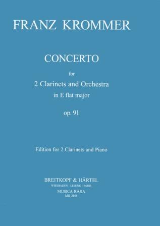 Krommer Concerto in E-Flat Major, Op. 91, for 2 Clarinets and Orchestra. Edited by William Martin. Reduction for 2 Clarinets and Piano.