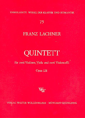 Lachner String Quintet, Op. 121, for 2 Violins, Viola, and 2 Cellos. Set of Parts.