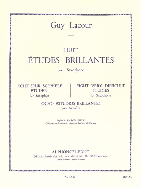 Lacour (Guy) Huit Etudes Brillantes [Eight (8) Very Difficult Studies] for Saxophone