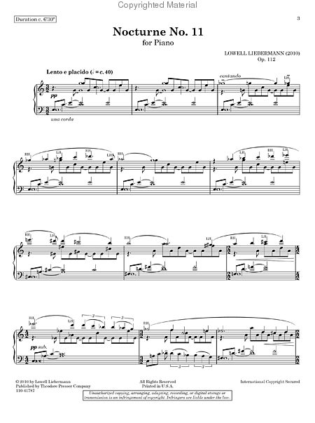 Liebermann (Lowell) Nocturne No. 11, Op. 112, for Piano
