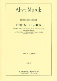 Locatelli Trio No. 2 in B-Flat Major for Flute (or Oboe or Violin), Viola d'amore (Viola), and Basso Continuo. Edited by Ulrich Druner. Playing Score and Parts.