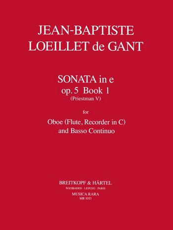Loeillet de Gant Sonata in E Minor, Op. 5, Book 1 (Priestman V), for Oboe (Flute, Recorder in C) and Basso Continuo.