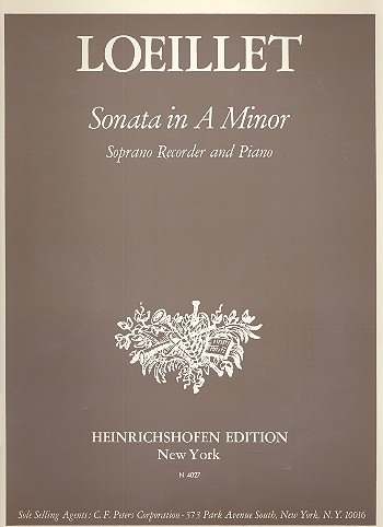 Loeillet [de Gant] Sonata in A Minor for Soprano Recorder and Piano. Edited by Fritz Koschinsky.