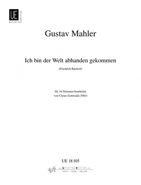 Mahler Ich bin der Welt abhanden gekommen (I Am Lost to the World). Arranged for 16-Voice Mixed Choir, Unaccompanied, by Clytus Gottwald.