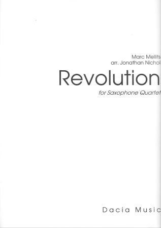 Marc Mellits Revolution. Arranged for Saxophone Quartet by Jonathan Nichol. Score and Parts.