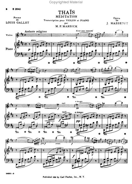 Massenet Meditation from "Thais," Arranged by M.P. Marsick for Violin and Piano