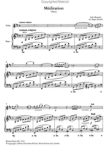 Massenet Meditation from "Thais," Arranged for Violin and Piano. Edited by Roger Nichols