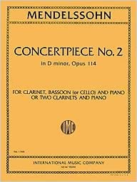 Mendelssohn Concert Piece No. 2 in D Minor, Op. 114, for Clarinet, Bassoon (or Cello), and Piano, or 2 Clarinets and Piano