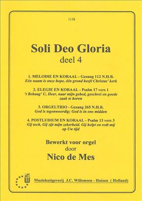 Mes (Nico de) Soli Deo Gloria, Vol. 4, for Organ. 1. Melodie en Koraal; 2. Elegie en Koralal; 3. Orgeltrio; 4. Postludium en koraal.