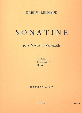 Milhaud Sonatine for Violin and Cello: Anime; Modere; Vif. 2 Playing Scores.