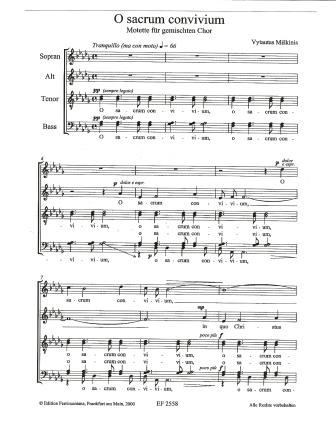 Miskinis O sacrum convivium. Motet for Unaccompanied Mixed Choir (SSAATTBB)