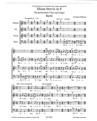 Miskinis Missa Brevis in F. Mixed Choir and Organ.
