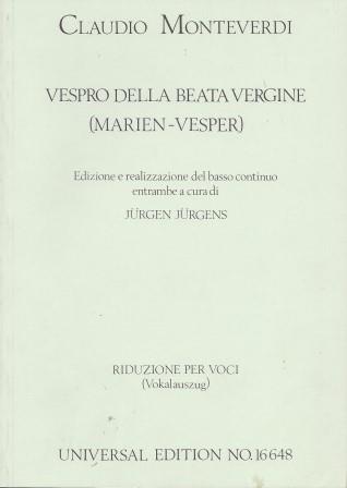Monteverdi Vespro della Beata Vergine [Marien-Vesper / Vespers]. Edited with a Realization of the Basso Continuo by Jurgen Jrgens. Vocal Score.