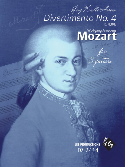 Mozart Divertimento No. 4, K. 539b, Arranged for 3 Guitars by Jurg Kindle. Score and Parts.