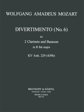 Mozart Divertimento No. 6 in B-Flat Major, K. Anh. 229 (439b), for 2 Clarinets and Bassoon. Edited by William Waterhouse. Score and Parts.