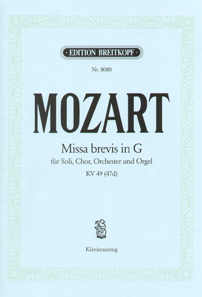 Mozart Missa Brevis in G Major, K. 49, Vocal Score
