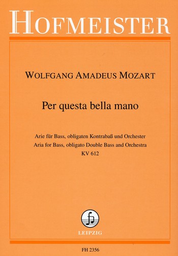 Mozart Per Questa Bella Mano, K. 612: Aria for Bass Voice, Obligato Double Bass, & Piano. After the Rediscovered Autograph Edited by Tobias Glockler.