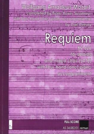 Mozart Requiem, K. 626, for Soloists and Mixed Choir (SATB), Completed by Sussmayr, with 4-Hand (One) Piano Accompaniment by Carl Czerny. Full Score.