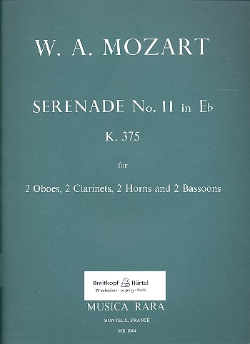 Mozart Serenade No. 11 in E-Flat Major, K. 375, for Winds (2 Oboes, 2 Clarinets, 2 Horns, 2 Bassoons). Set of Parts.