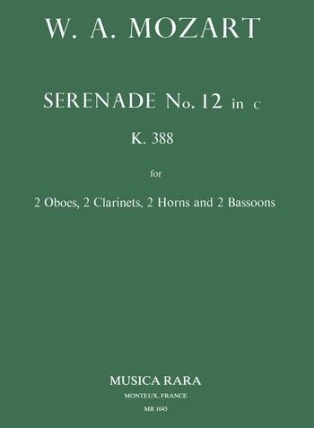Mozart Serenade No. 12 in C Minor, K. 388, for Winds (2 Oboes, 2 Clarinets, 2 Horns, 2 Bassoons). Set of Parts.