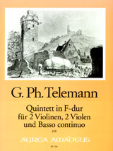 Telemann Quintet in F Major for 2 Violins, 2 Violas, & Basso Continuo. TWV 44:11. First Edition. Score & Parts).