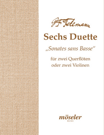 Telemann Six (6) Duets: Sonatas without Bass, for 2 Flutes or 2 Violins. Edited by Rudolf Budde. Playing Score.