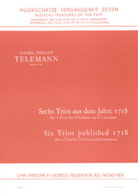 Telemann Trio No. 4 (From 6 Trios Published 1718), 2 Violins & B.C. Score & Parts