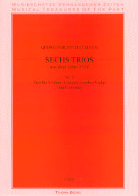 Telemann Trio No. 6 (From 6 Trios Published 1718), for Violin, Cello, & Basso Continuo. Score & Parts
