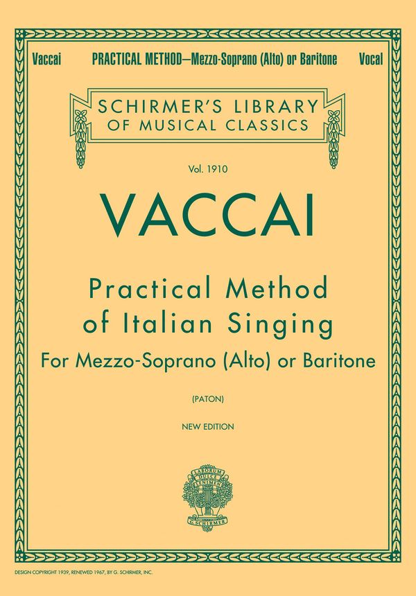 Vaccai Practical Method of Italian Singing for Mezzo-Soprano (Alto) or Baritone. New Edition. Edited with INtroduction, Translation & Notes by John Glenn Paton.