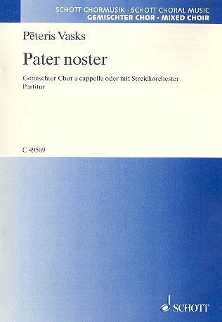 Vasks Pater Noster, for Mixed Choir a Cappella (or with String Orchestra). Choral Score