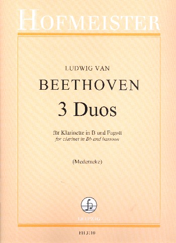 Beethoven 3 (Three) Duos, for B-Flat Clarinet and Bassoon. Edited by Kurt Mederacke. Playing Score.