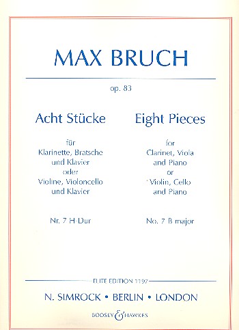 Bruch Eight (8) Pieces, Op. 83, No. 2, for B-Flat Clarinet, Viola, & Piano (or Violin, Cello, & Piano).